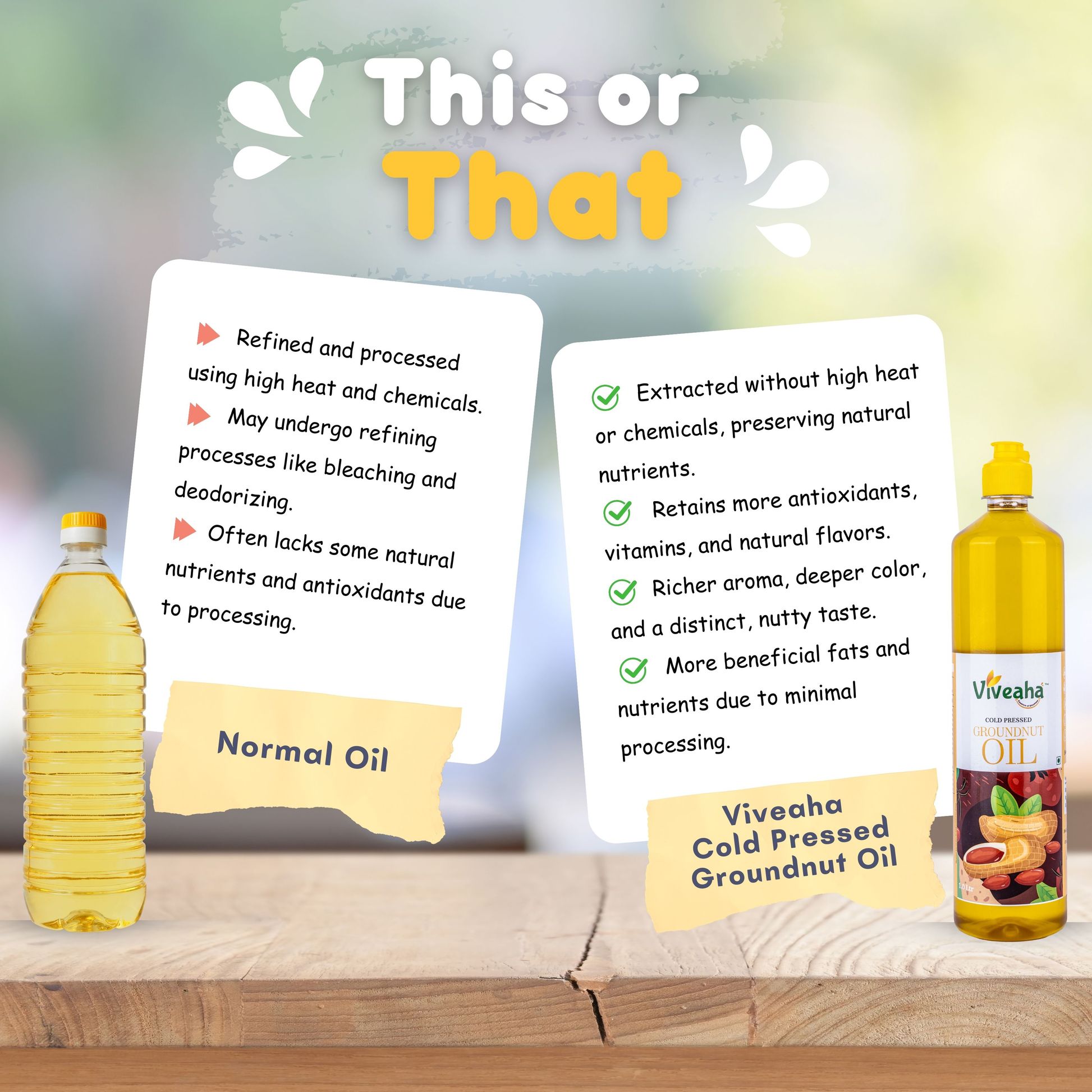 Natural Extraction Process: Cold-pressed groundnut oil is derived from peanuts through a method that involves minimal heat, preserving the oil's natural flavor and nutritional integrity.