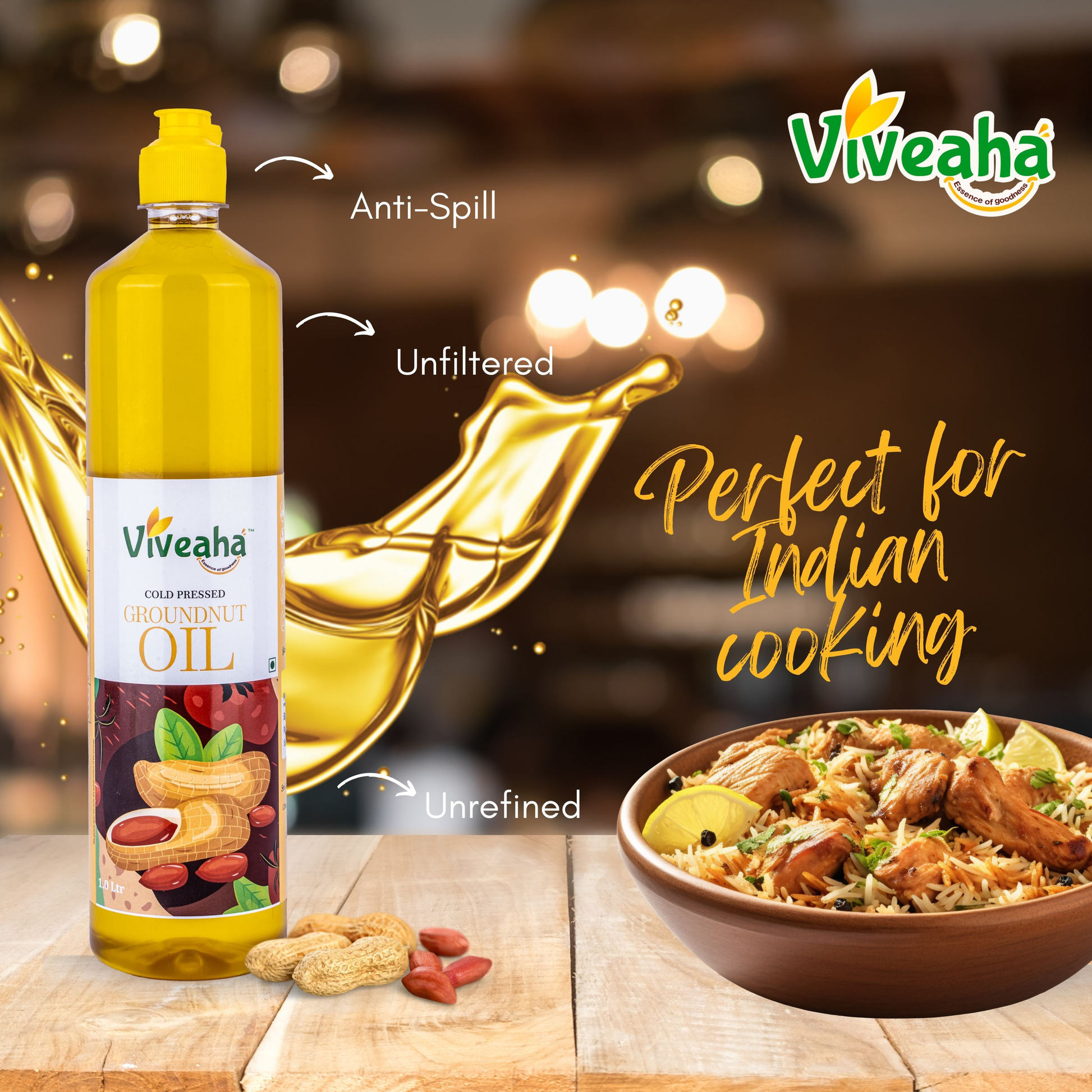 Natural Extraction Process: Cold-pressed groundnut oil is derived from peanuts through a method that involves minimal heat, preserving the oil's natural flavor and nutritional integrity.