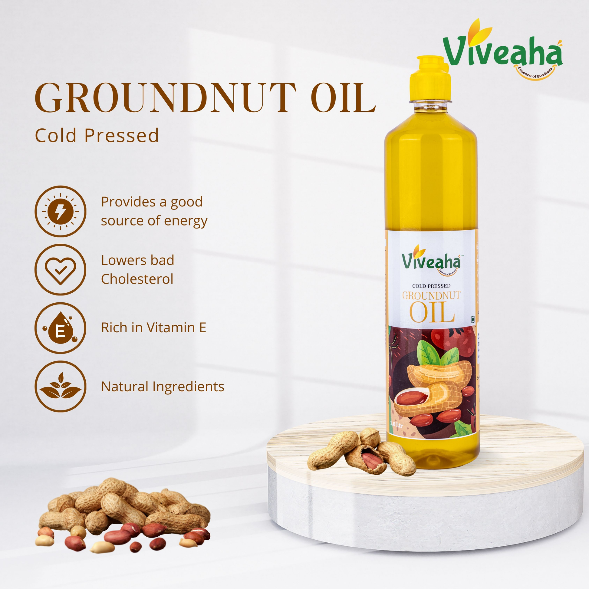 Natural Extraction Process: Cold-pressed groundnut oil is derived from peanuts through a method that involves minimal heat, preserving the oil's natural flavor and nutritional integrity.